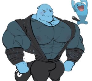 Pokemon Hentai Art – body hair, black hair, big balls, facial hair, muscles, schizoid, male only