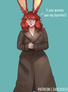 Aurora Hot Hentai – bunny ears, text, ls, red hair, blue eyes, public, shy