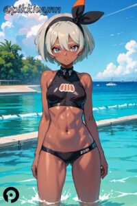 Bea Game Hentai – abs, swimsuit, looking at viewer, navel, dark skin, ass visible through thighs