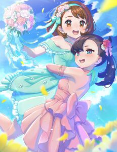 Gloria Hentai Art, Marnie Hentai Art – bride, wife and wife, pearl necklace, bouquet, choker, brown hair, blue dress