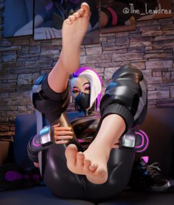 Tracytrouble Game Porn – epic games, foot focus, face tattoo, handwear, wall, sitting