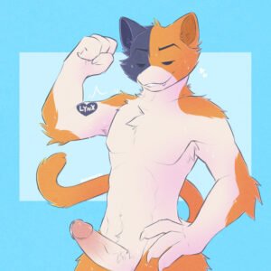 Meowscles Sex Art – range body, long tail, black body, solo male.