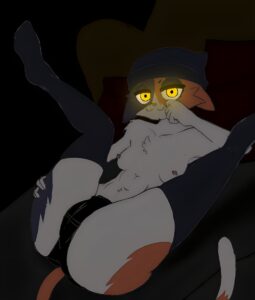 Meowskulls Porn Hentai – hi res, headgear only, clothing, male/female, holding weapon, hat only, yellow eyes