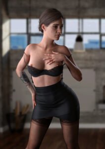 Ellie Xxx Art – bare thighs, looking away, artwork), solo
