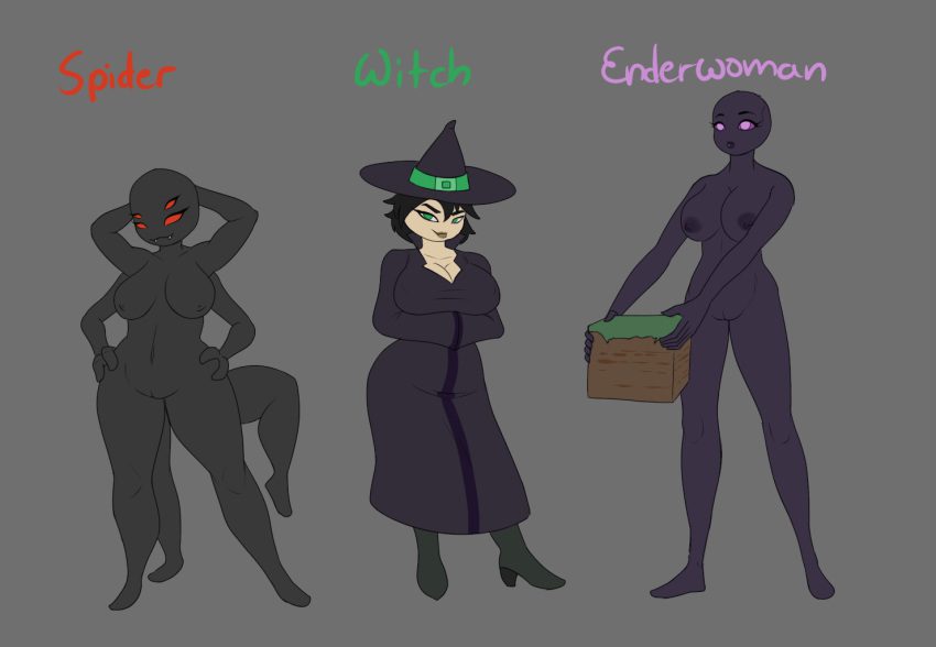 Enderman Rule, Spider Rule, Witch Rule – nipples, xbox game studios, breasts, simple background, looking at viewer, genitals