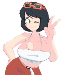 Evie Porn Hentai – big ass, v sign, big breasts, winking at viewer