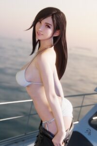 Final Fantasy Game Porn – dark skin, ass, earrings, mon eree, back, blue bikini, wet clothes