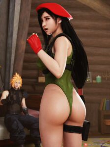 Final Fantasy Hentai Porn – green leotard, final fantasy vii, between buttocks, thong leotard, beret, tifa lockhart, pinup