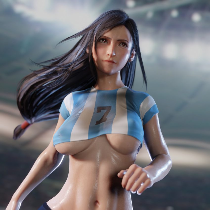 Final Fantasy Hentai – brown eyes, tifa lockhart, brown hair, football player, world cup, final fantasy vii