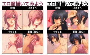Final Fantasy Hentai Porn – kiss mark, multiple views, black hair, green eyes, close-up