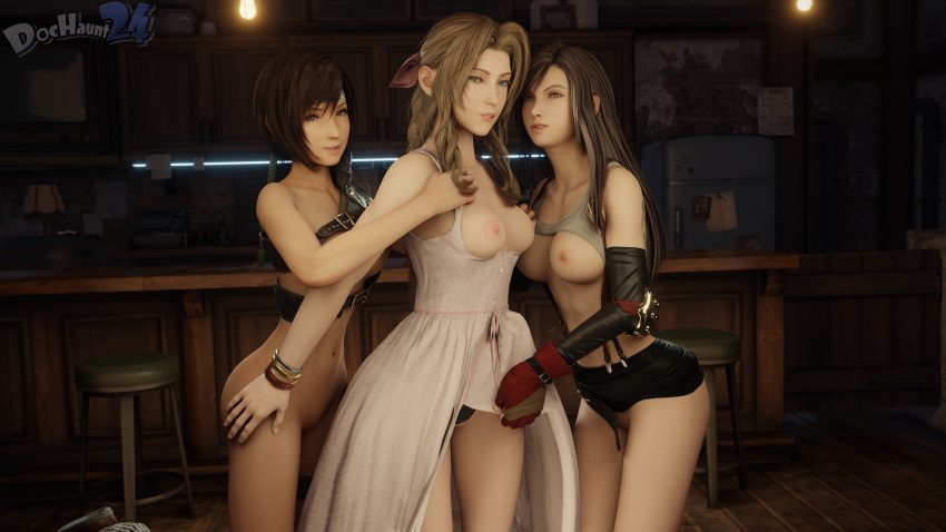 Final Fantasy Xxx Art – dochauntd (artwork), aerith gainsborough, tifa lockhart, medium breasts, 3d
