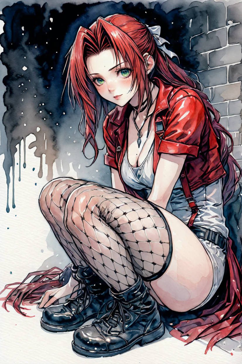 Final Fantasy Hentai Art – legs, final fantasy vii remake, red dress, light-skinned female, green eyes, brown hair, night