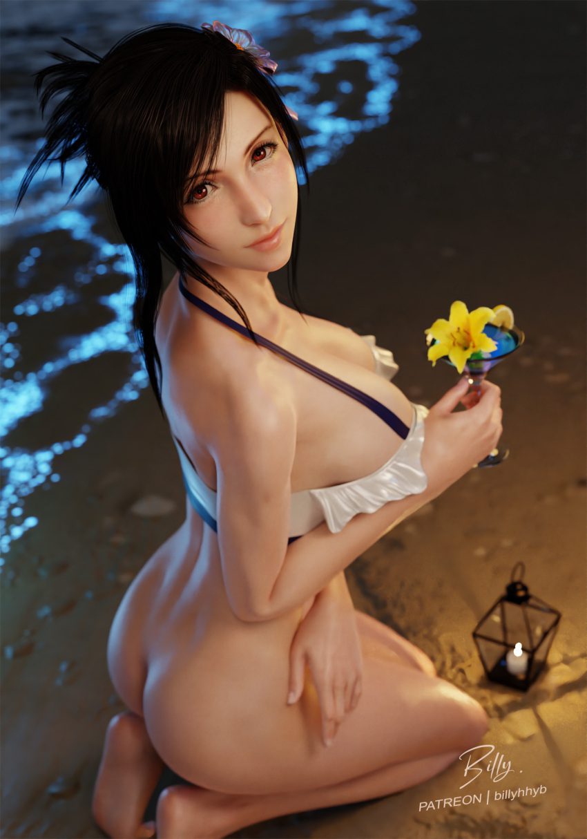 Final Fantasy Game Porn – breasts, red eyes, tifa lockhart, light skin, bikini, female, outdoors