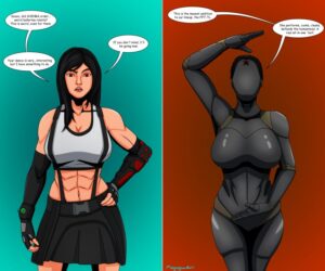 Final Fantasy Game Hentai – femsub, speech bubble, clothed, breasts, robotization, before and after, collarbone