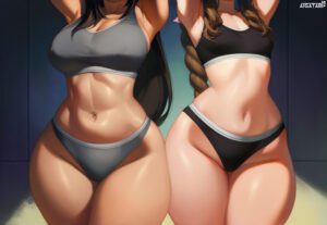 Final Fantasy Rule – netorase, sweat, aigatari, cuckold. Very dark skin, netorase, underwear, cuckold, sports bra, dark-skinned male, nsfw, ntr, wide hips, sweat, ai generated, tifa lockhart, sex, fat male, aerith gainsborough, netorare, interracial.