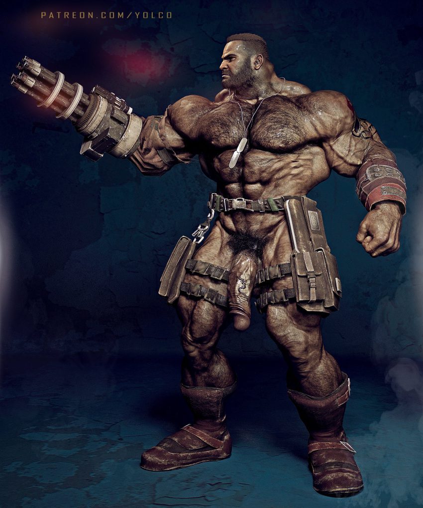 Final Fantasy Hentai Art – barret wallace, dark skin, solo male, artwork)