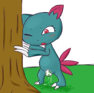 Pokemon Rule Porn – solo, open mouth, red eyes, grass, pussy juice