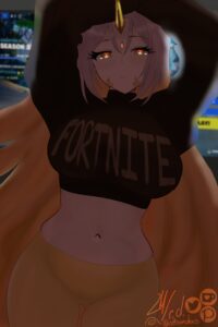 Fortnite Sex Art – yoga pants, multicolored hair, hair between eyes, horn