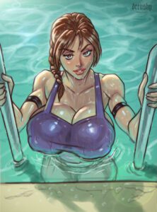 Tomb Raider Rule Porn – nipple bulge, derushy, tank top, wet skin, swimming pool, brown eyes