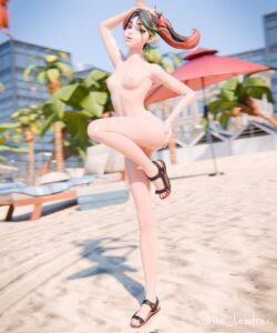 Overwatch Hentai Porn – abs, messy hair, taking picture, balcony, solo, tanline, bikini.
