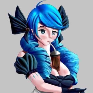 Gwen Xxx Art – kenichidraws, boba tea, blue hair, cleavage
