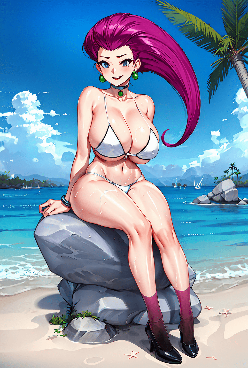 Hilda Rule Xxx – light skin, pokemon bw, stable diffusion, huge breasts, long ponytail, bikini