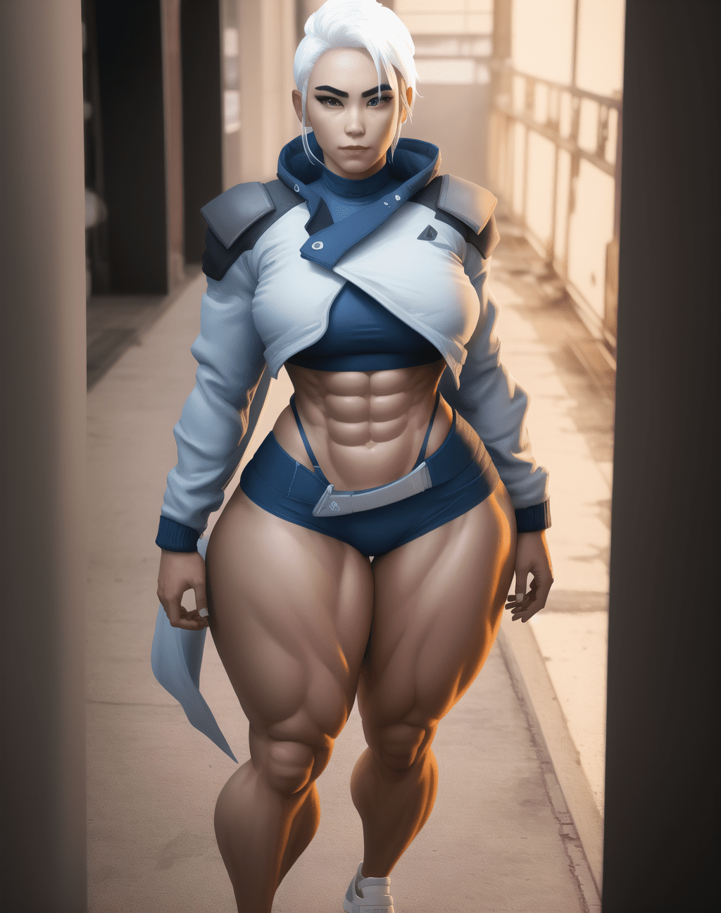 Jett Porn Hentai – abs, thick thighs, white hair, ai generated