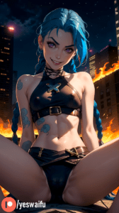 Jinx Game Porn – female only, erect nipples, partially clothed, riot games, ai generated, female