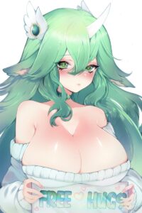 League Of Legends Free Sex Art – green hair, sweater, breasts, female focus, blush