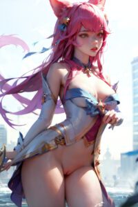 League Of Legends Porn – riot games, ai generated, pink hair, bottomless, star guardian ahri, partially clothed, female focus