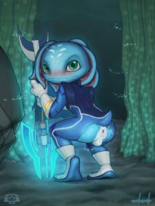 League Of Legends Rule – seabed, anthro, ass, looking at viewer, torn clothing, holding weapon