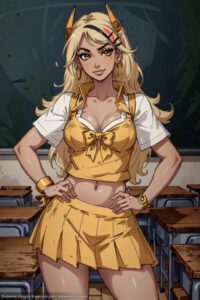 Leona Hentai Xxx – schoolgirl uniform, tall female, blonde hair, ai generated, eye contact, thick thighs, thighs