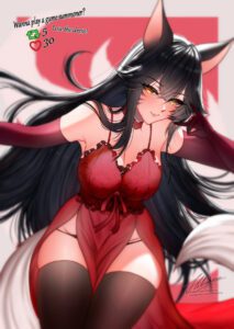 League Of Legends Hentai – light skin, fox girl, highres, stockings, multiple tails, artist name, wide hips