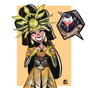 Lulu Hentai – hair bun, fur cuffs, sexy pose, light skin, safe for work, eyebrows, pink trees