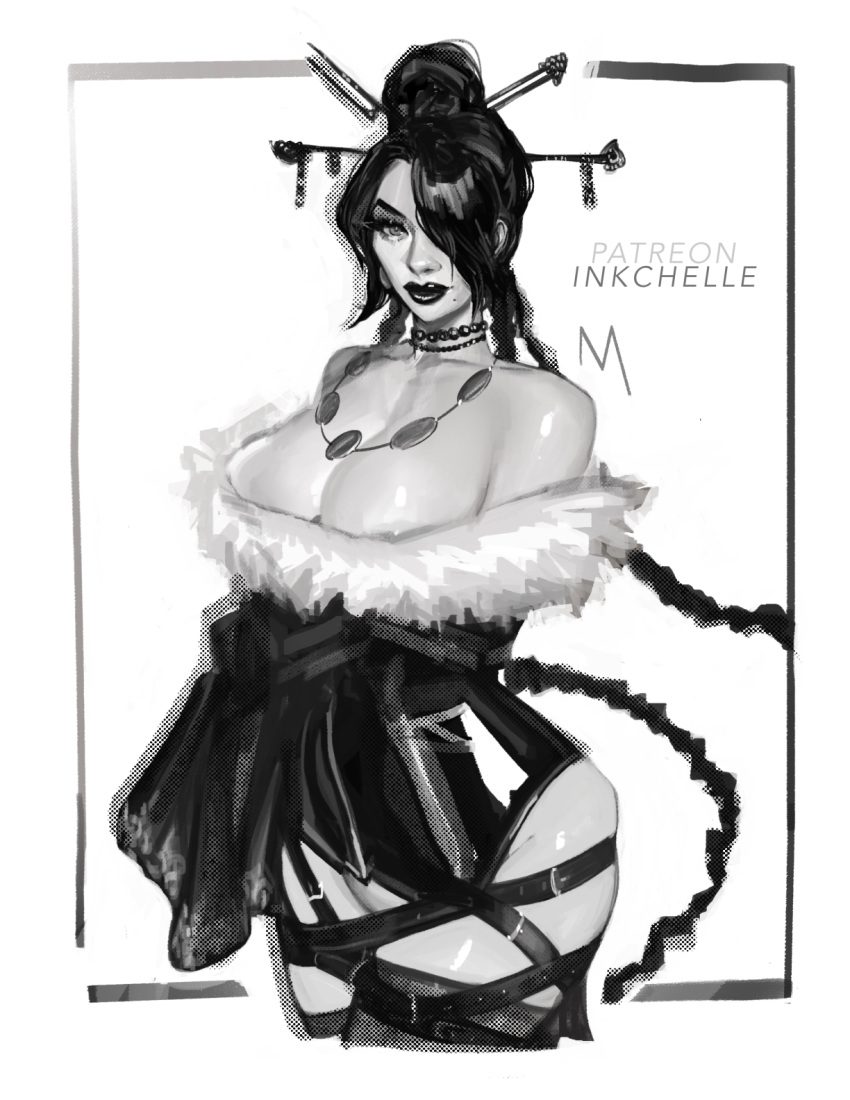 Lulu Porn – black hair, breasts out, female only, thick thighs, red eyes, female