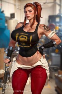 Overwatch Porn – muscles, female, clothing, abs, large breasts, bare thighs