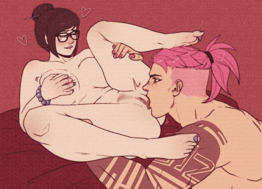 Overwatch Game Hentai – blender (software), painted nails, big breasts, interracial, hands under breasts, open mouth, pink hair