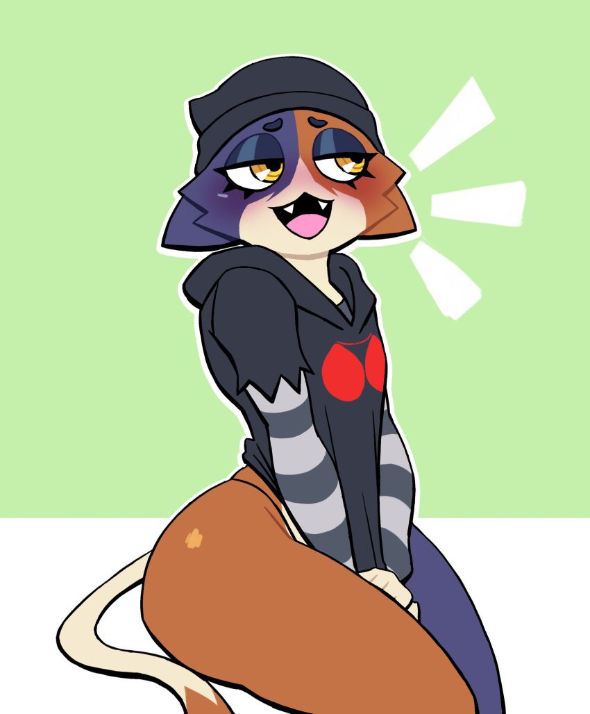 Meowskulls Hentai Porn – feline, human, male, huge breasts, yellow eyes, beanie, felis