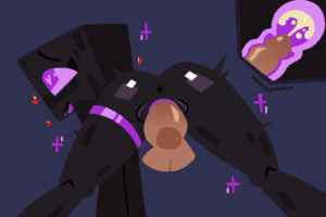 Minecraft Hentai Porn – purple pupils, heart, red heart, cumming, enderwoman, flat background, black skin