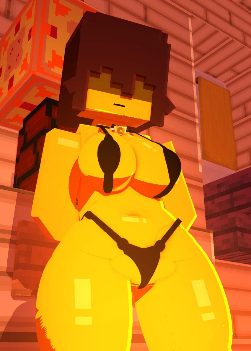 Minecraft Xxx Art – mine-imator, shadow, wooden wall, big breasts, curvy female, curvy figure, saliva drip