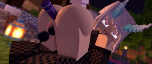 Minecraft Game Hentai – blue horns, fishnet armwear, looking back
