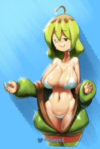 Minusrn – breasts, grey body, arms up, yellow hair, crossed arms, cat ears, blue hair.