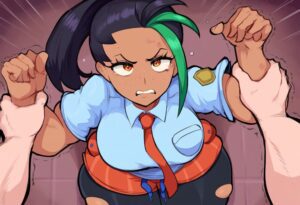 Nemona Sex Art – dark-skinned female, school uniform, thick thighs, huge breasts, pokemon sv