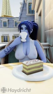 Overwatch Xxx Art – widowmaker, blue hair, teacup, huge breasts, voluptuous