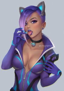 Overwatch Game Porn – ear piercing, sombra, black cat sombra, tan skin.
