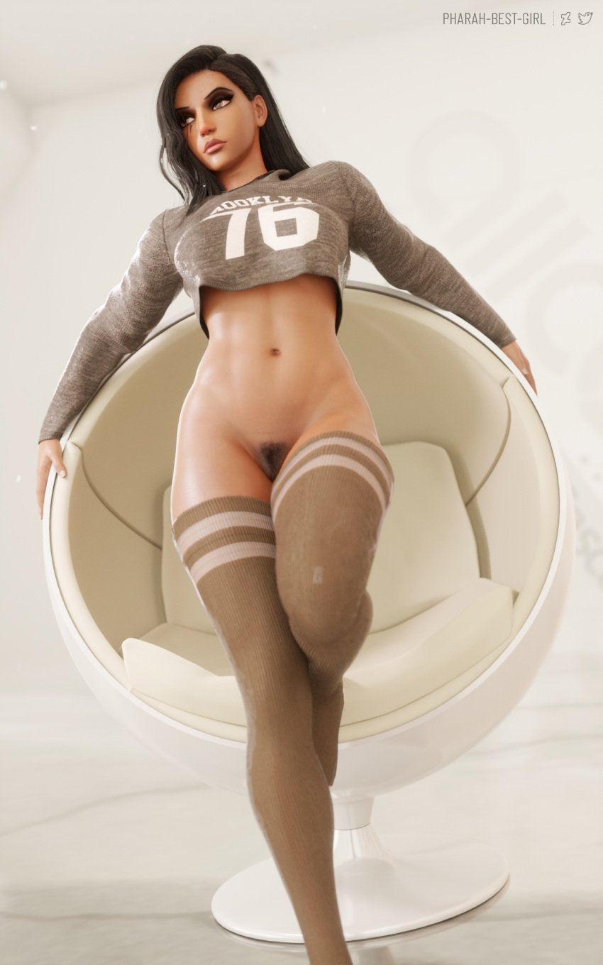 Overwatch Game Porn – big butt, huge ass, dark-skinned female, swimsuit.