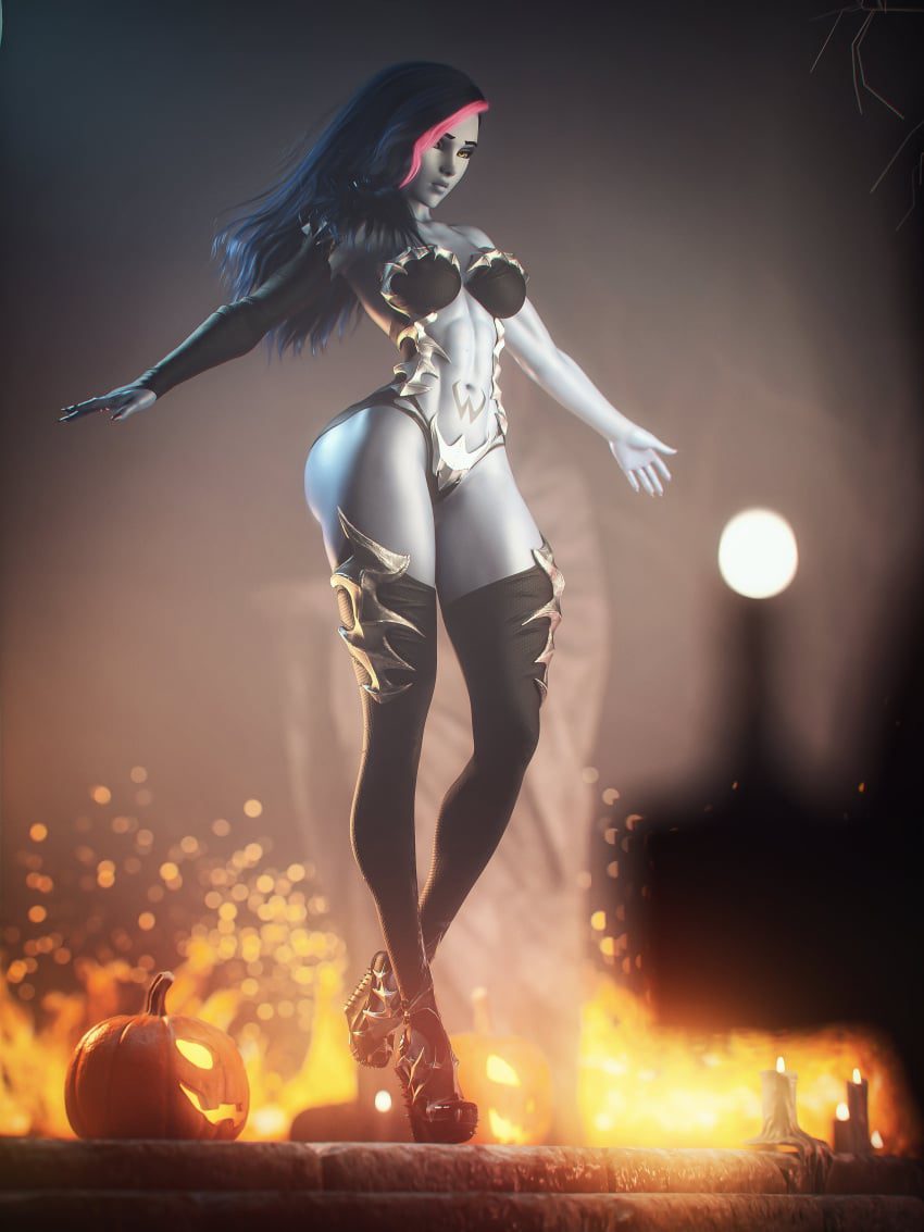 Overwatch Hentai – legs, purple skin, breasts, purple hair, curvy figure, top heavy