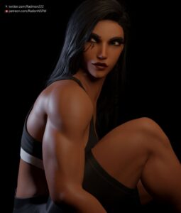 Overwatch Hentai Art – muscular female, long hair, muscular arms, ls, blender (software), pinup