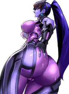 Overwatch Hentai – blue skin, latex, blender, tight clothing, nipple slip, widowmaker.