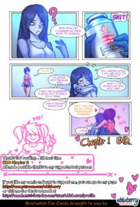 Overwatch Hentai Art – cosplay, through clothes, comic page, pussy juice, comic, blue skin